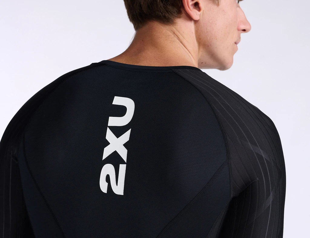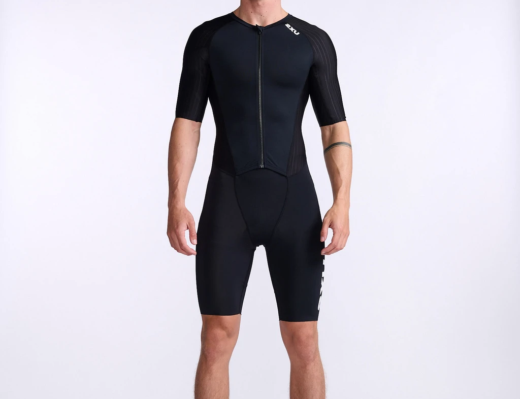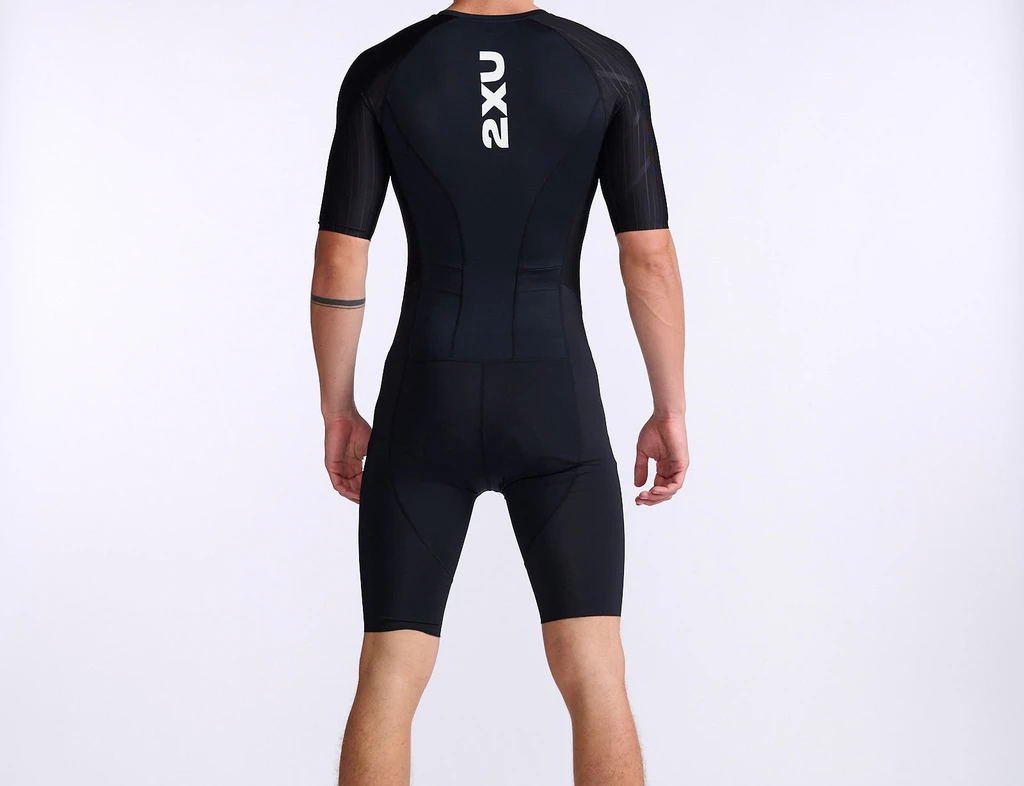 Het 2XU Aero trisuit korte mouw is in de schouders en zijpanelen voorzien van een 3D structuur en een naadloze mouwafwerking van SBR channel.