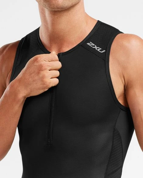 Ook het 2XU Perform mouwloos tri top zwart heren heeft een grote update gekregen en is nu voorzien van de nieuwste technische stoffen van 2XU die je helpen om de ontberingen van de triatlon te overwinnen.
