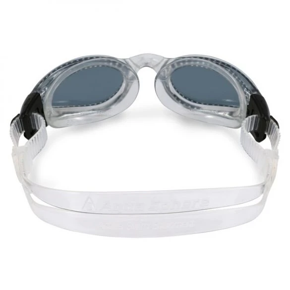 Deze Aqua Sphere Kaiman donkere lens zwembril zilver heeft donkere glazen en een gekleurd frame.