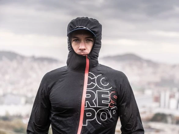 Het Compressport hurricane 25/75 waterdicht hardloopjack is waterproof maar toch ademend.
