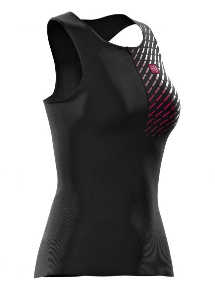 De Compressport Trail running postural mouwloos compressieshirt zwart dames is superlicht, zeer ademend en waterafstotend.