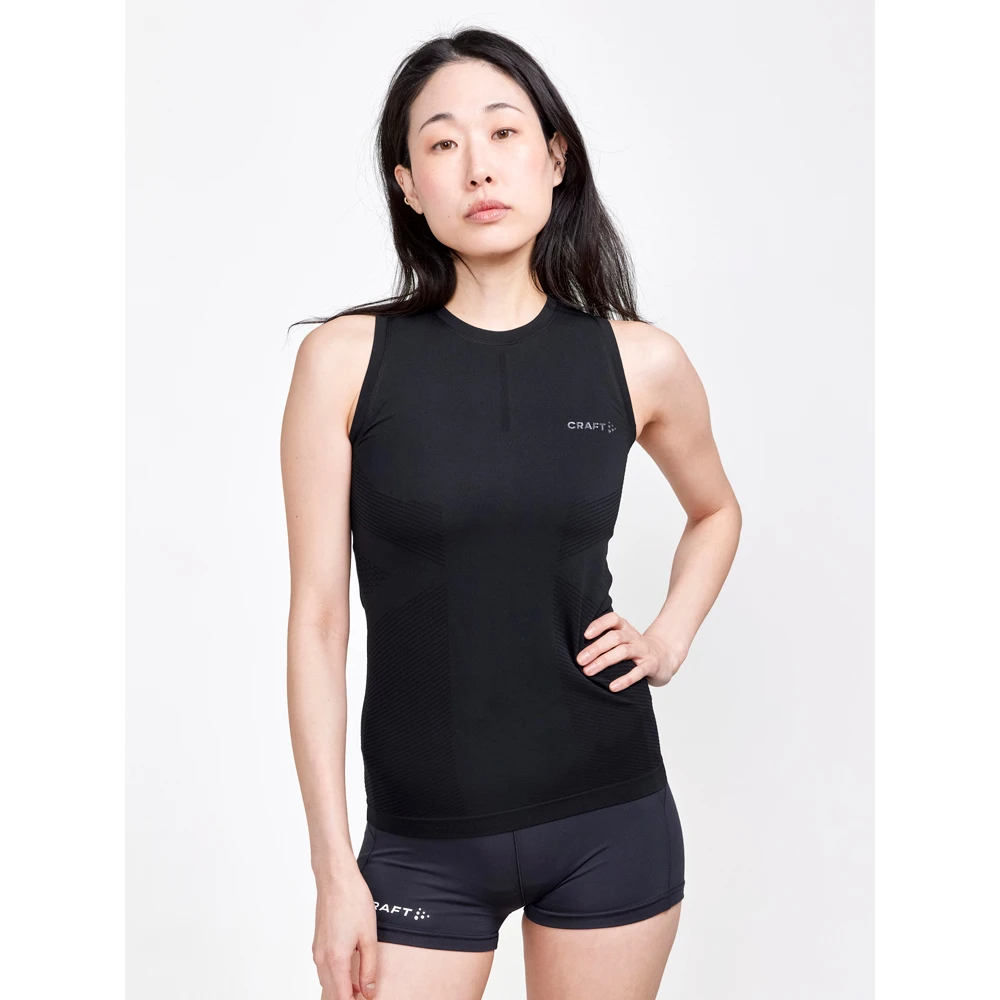 De Craft ADV Cool Intensity SL ondershirt zwart dames is een licht en verkoelend mouwloos shirt dat een goede beheersing van de lichaamstemperatuur biedt gedurende trainingen met hoge intensiteit in warme omstandigheden.
