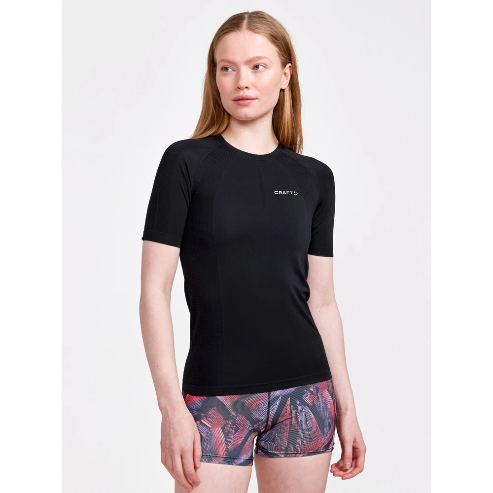 De Craft ADV Cool Intensity SS ondershirt zwart dames is een licht en verkoelend mouwloos T-shirt dat een goede beheersing van de lichaamstemperatuur biedt gedurende trainingen met hoge intensiteit in warme omstandigheden.