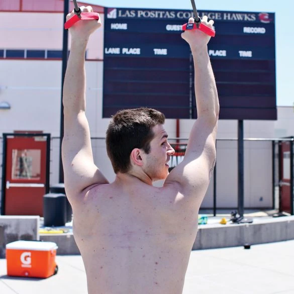 – Simuleert zwemmende bewegingen buiten het water en isoleert vitale spiergroepen