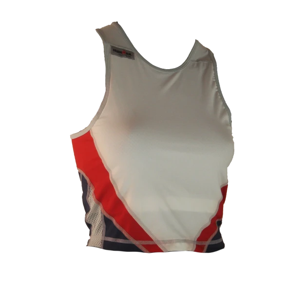 De Ironman tri top mouwloos extreme wit/rood/blauw dames is een korter tri topje ontworpen voor de korte en middelange afstanden.
