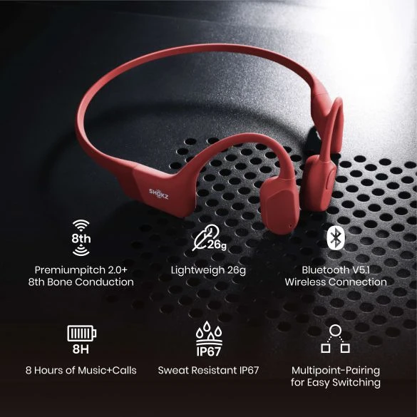 Shokz OpenRun Hoofdtelefoon Rood -Zwemartikelen Winkel shokz logo 12