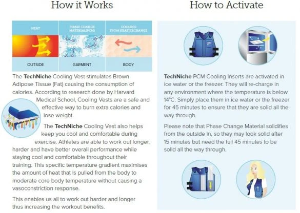 Het TechNiche KewlFit koelvest weight management dames is speciaal ontworpen om bruin vetweefsel (BAT) te stimuleren bij een optimale 14 graden.