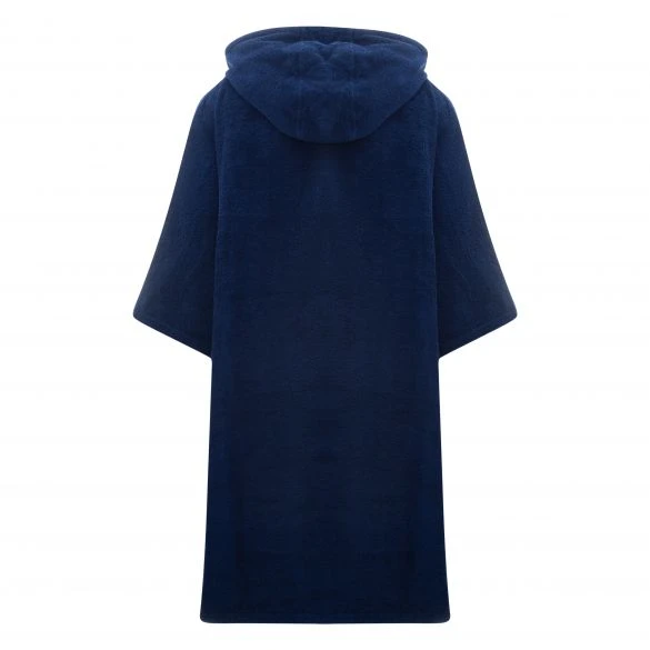 De badjas is voorzien van grote zakken voor opslag en een capuchon – met koordjes – om uw hoofd warm te houden.
